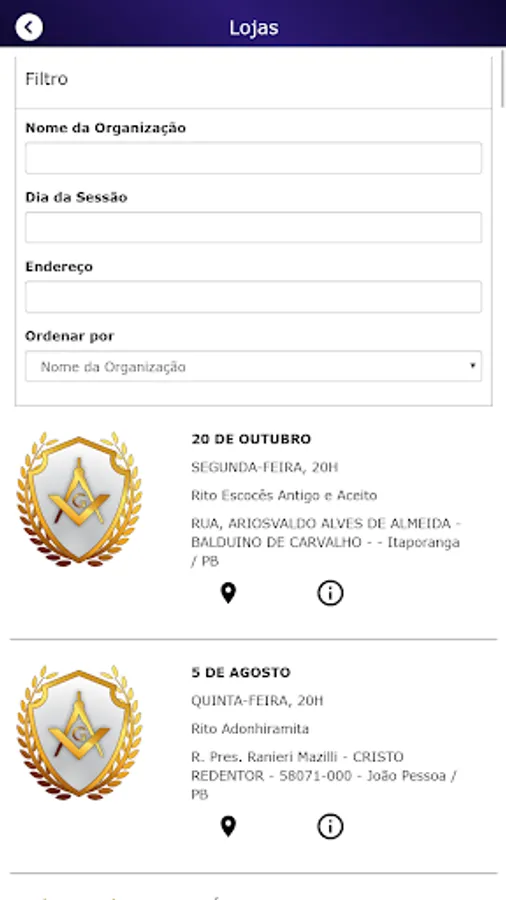 To have access to information about the Organizations and Members that are part of the GOB-PB, through the respective menus "Lojas" and "Freemasons of the GOB-PB".