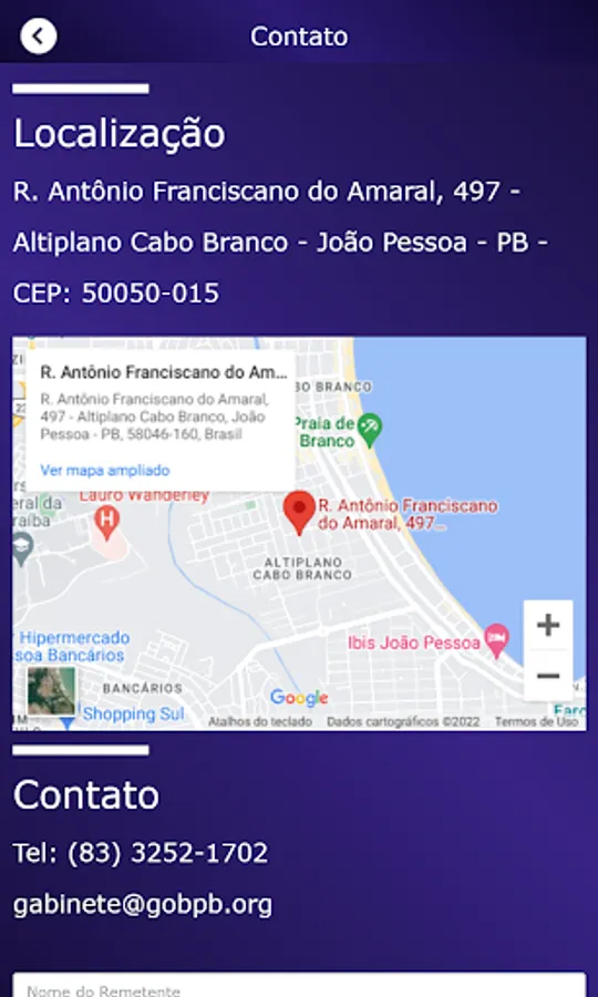 You can view the events through the "Events" menu and the means of contact that GOB-PB has through the "Contact" menu.