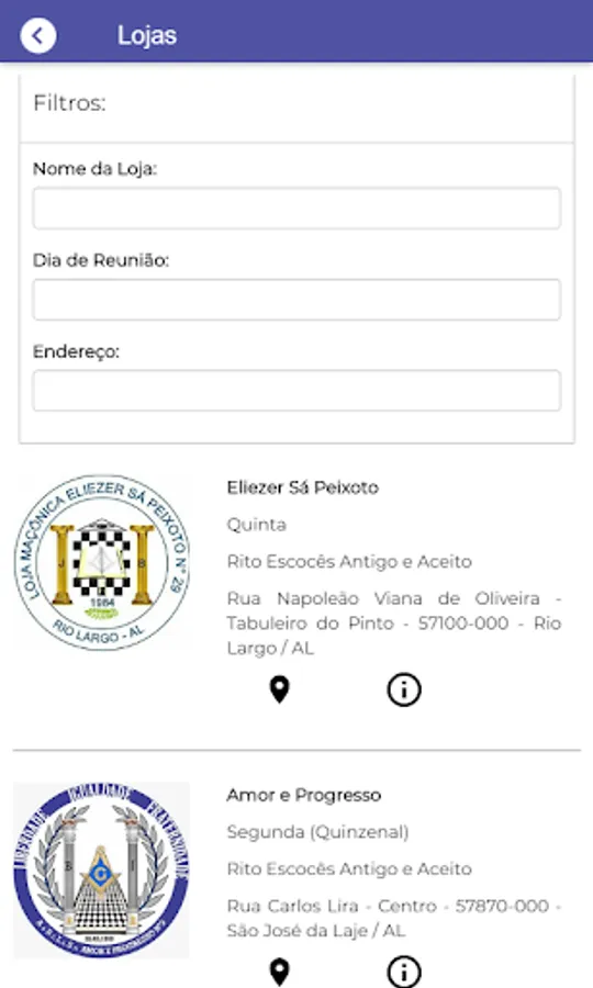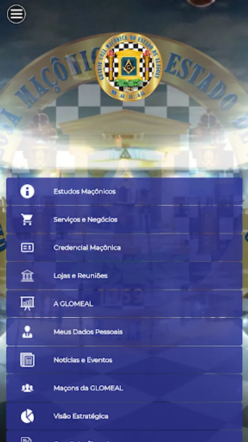 Through the menu “A GLOMEAL”, to have access to the history of the Masonic Grand Lodge of the State of Alagoas, to be able to access and view data about the organizations and members that are part of GLOMEAL, through the respective menus “Shops” and “Freemasons of GLOMEAL ”. Have access to your own personal data through the "My Personal Data" menu.