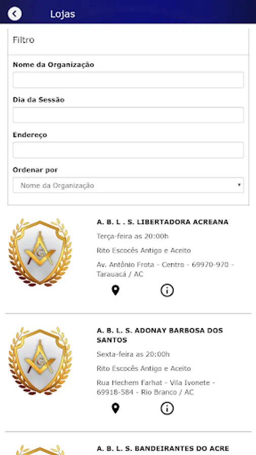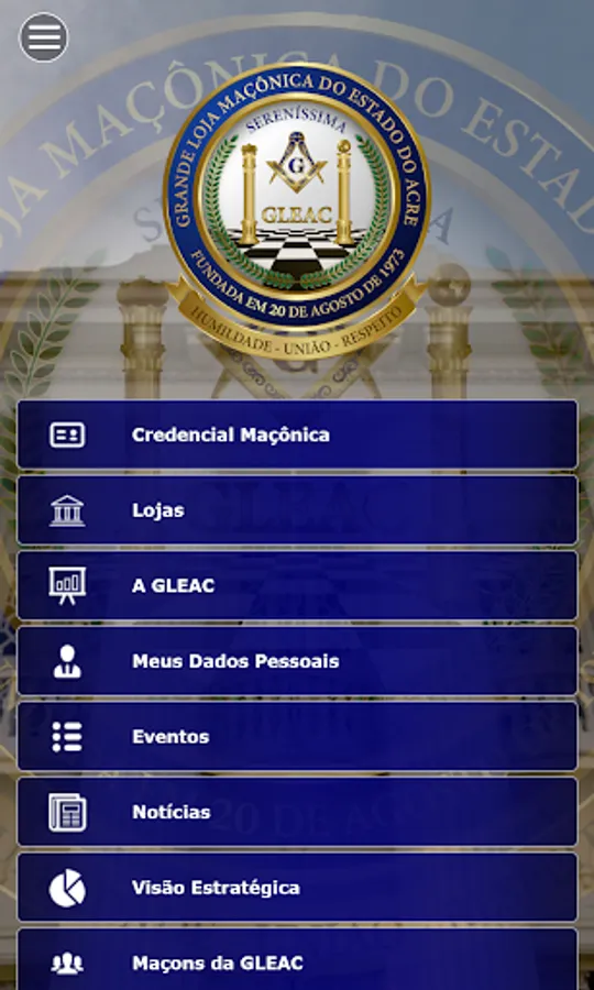 Have access to information about the Organizations and Members that are part of GLEAC, through the respective menus "Lojas" and "GLEAC Freemasons".Have access to your own personal data through the menu “My Personal Data”. You can view the events through the "Events" menu and the means of contact that GLEAC has through the "Contact" menu.
