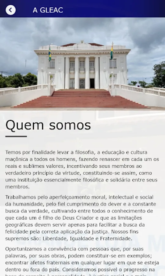 Through the menu "A GLEAC", have access to information about the values and purposes of Grade Oriente de Alagoas.