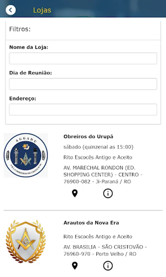 5) Through the "GOR Masons" menu, the "Logged in" user has access to a list with some contact data of the "GOR" Masons.