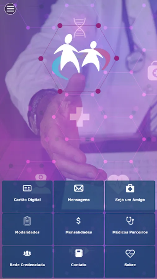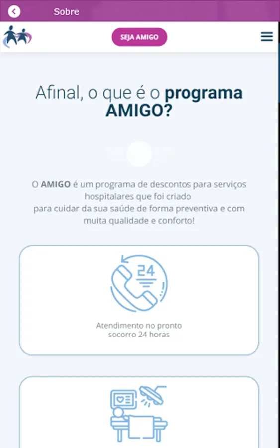 8) In the “About” menu, the user will have access to information about the AMIGO Saúde Program.