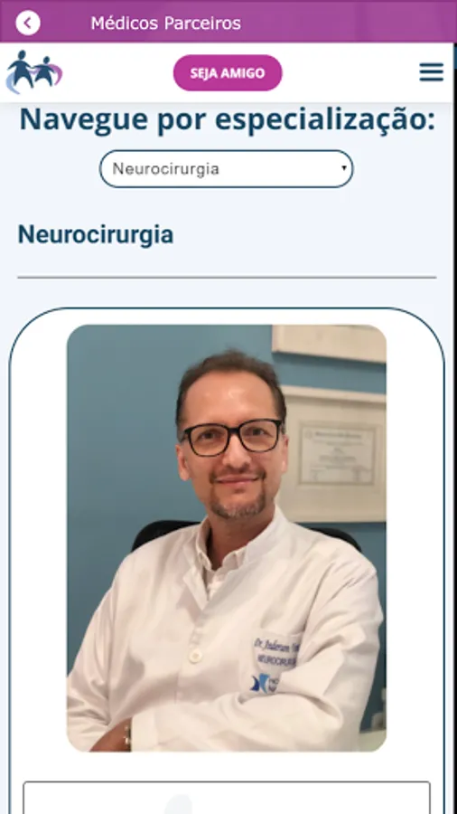 5) In the “Partner Doctors” menu, the user can find the partner doctors of the AMIGO Saúde Program.
