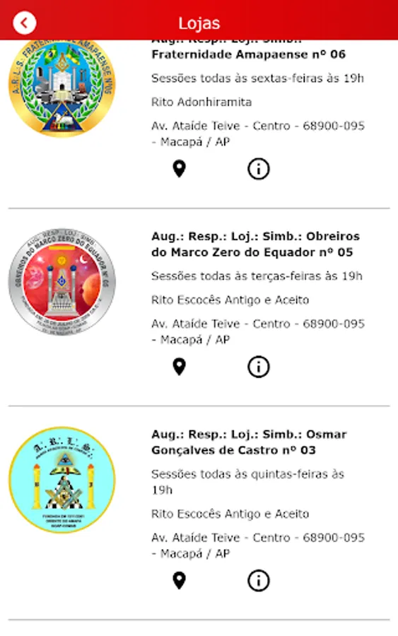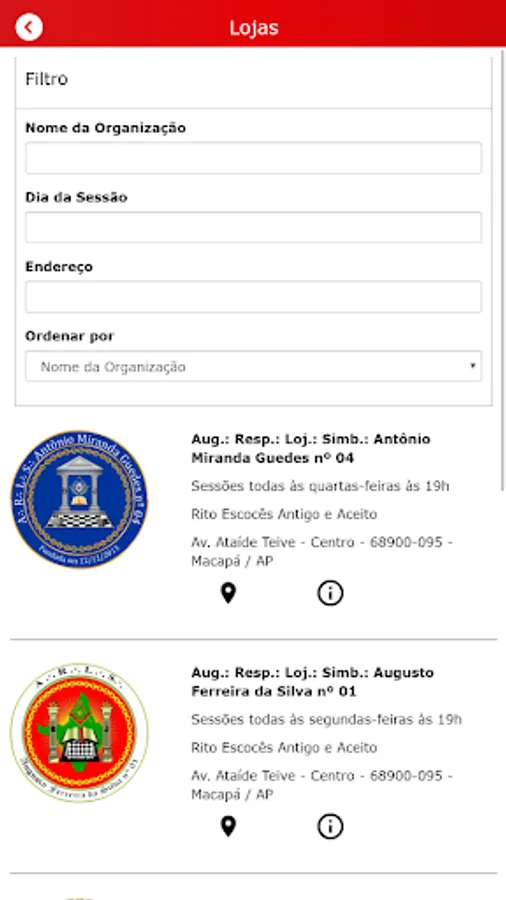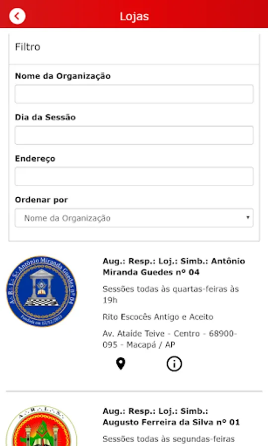 Have access to information about the Organizations and Members that are part of the GOAP, through the respective menus "Lojas" and "Freemasons of GOAP".