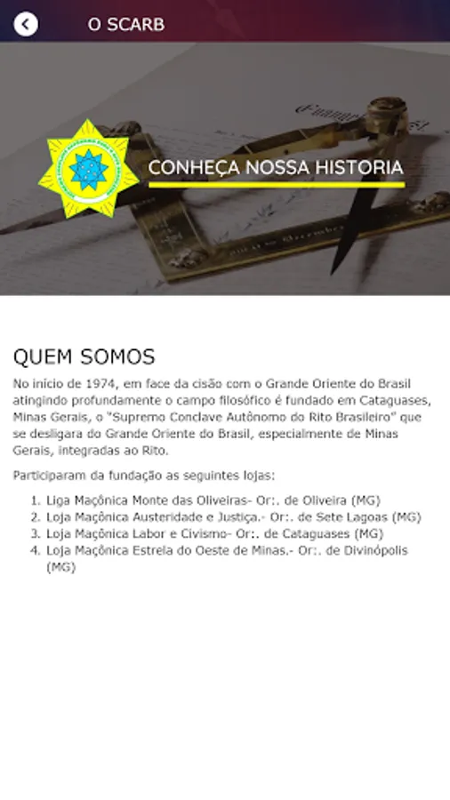 3) Through the menu "The SCARB" the user will have access to information such as the origin of the "SCARB", among others.