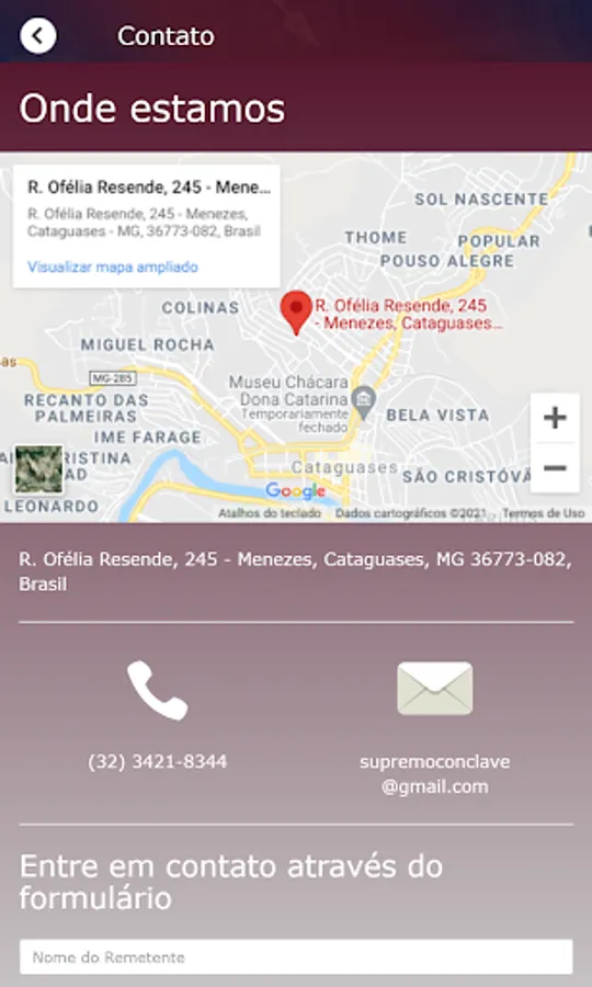 8) Through the "Contact" menu, the user has access to the "SCARB" contact information.