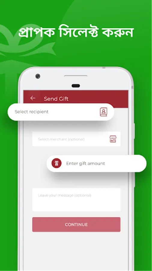 - Through the Xtra app, you can easily send gifts. All you need to do is to log-in to your Xtra app from your Android device, then enter the Gift Receiver’s phone no, gift amount and optionally select a merchant or not. After that, you just have to pay through bKash or debit/credit card. That’s it, it’s so simple.