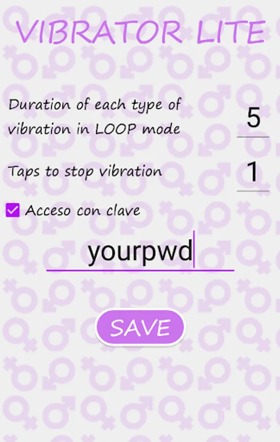In the configuration section, you can change how many times you need to press the STOP button to stop the vibration not unintentionally, set an access password...