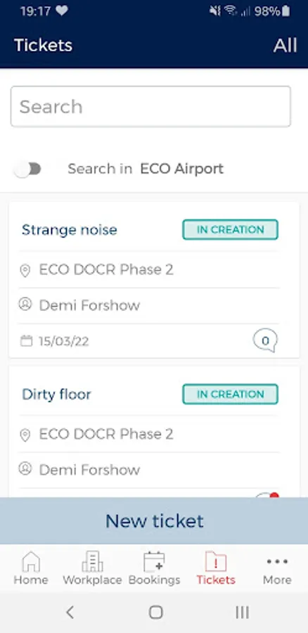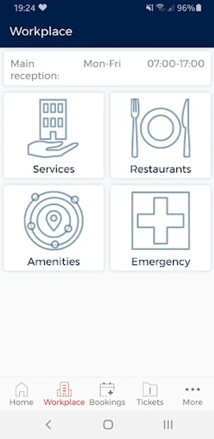 The app allows you to create incident reports and view important information and contact details about your location (e.g. emergency information, service hotlines or meal plans).