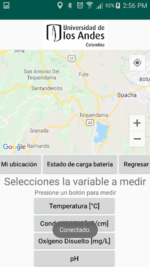 "Calprobe2 App" is a tool for SensoAgua users, which is a device for measuring water quality parameters. Where half of the application can be the user will be able to know four water quality variables which will be able to send by text message or email along with the location where the measurement was enhanced.