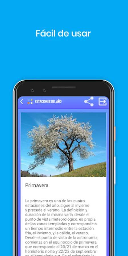 The seasons of the year: it is a free educational application for all ages where you can learn and obtain knowledge at any time and anywhere with or without internet.