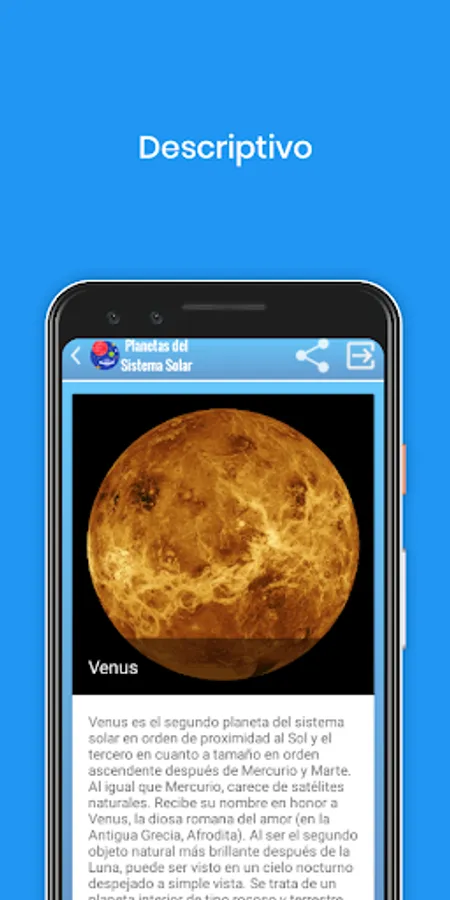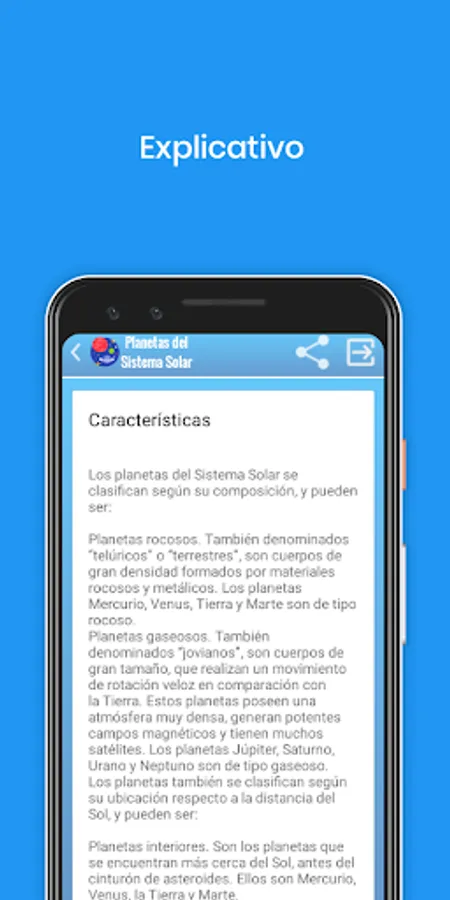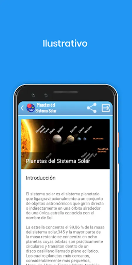 Planets of the solar system: it is a free educational application for all ages where you can learn and obtain knowledge anytime and anywhere with or without internet.