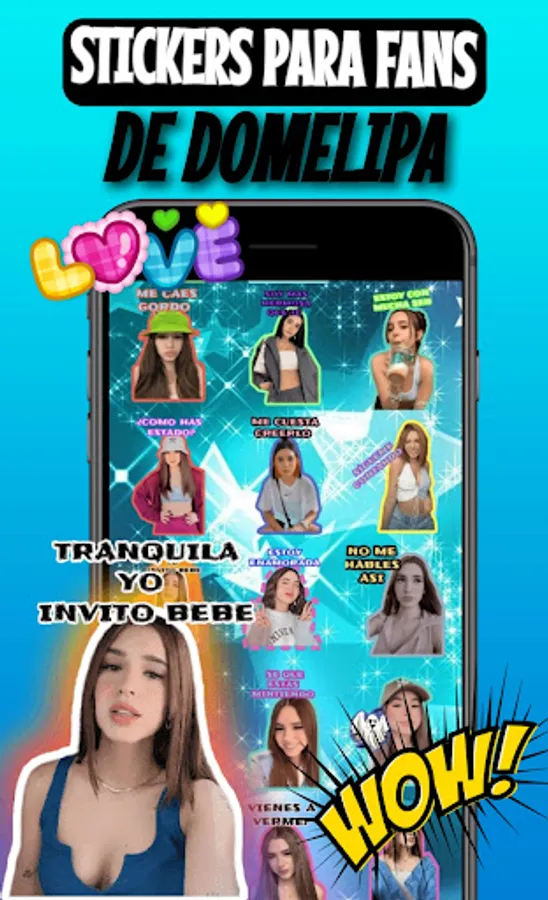 🥰Well, this is an application of stickers for all its fans, since with them you can communicate with your friends with the different and varied phrases of our DOMELIPA Download the application in a very simple way and have fun chatting with these beautiful stickers..