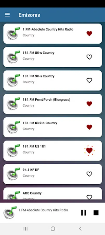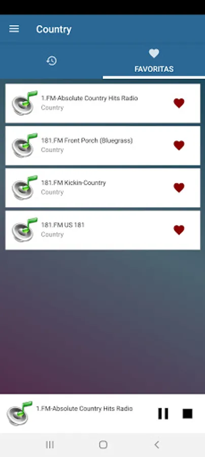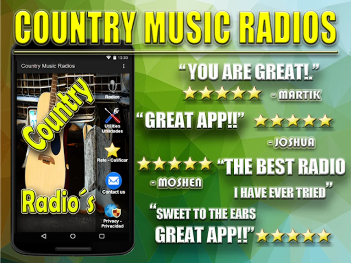 🔊 The user interface is simple fast and clear. To listen to Country Music radios. Go to Radios, Select the station and click on Play🔊
