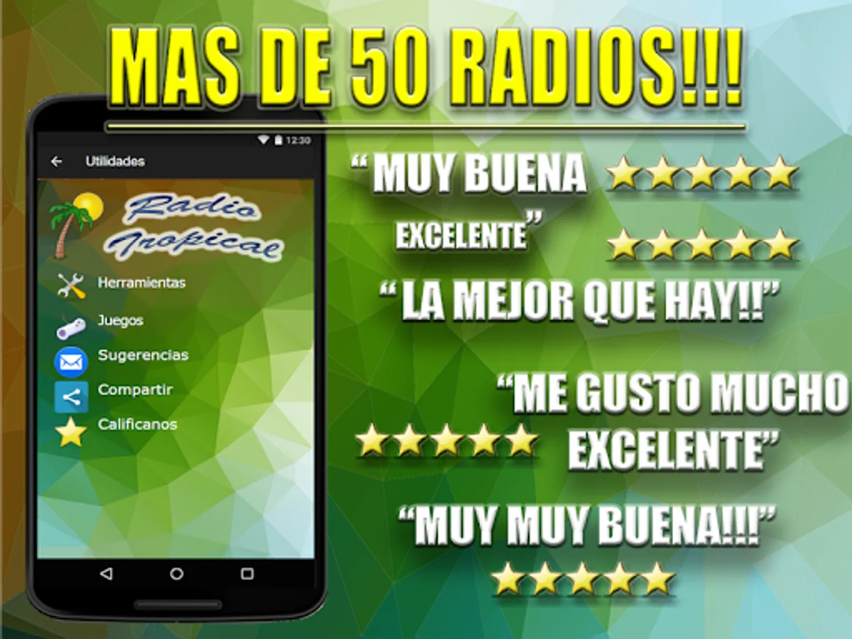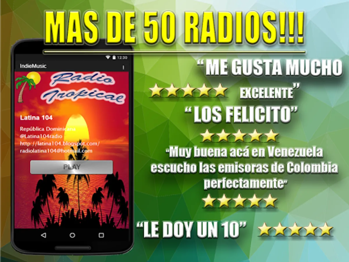 Enjoy the best tropical music radio stations from different countries in Latin America in the Free format , just by installing the app on your phone.