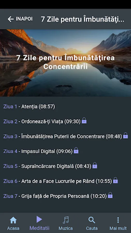 - Programe special create pentru diverse situatii (stres, anxietate, somn, despresie, concentrare, relatia cu tine și cu cei din jur)