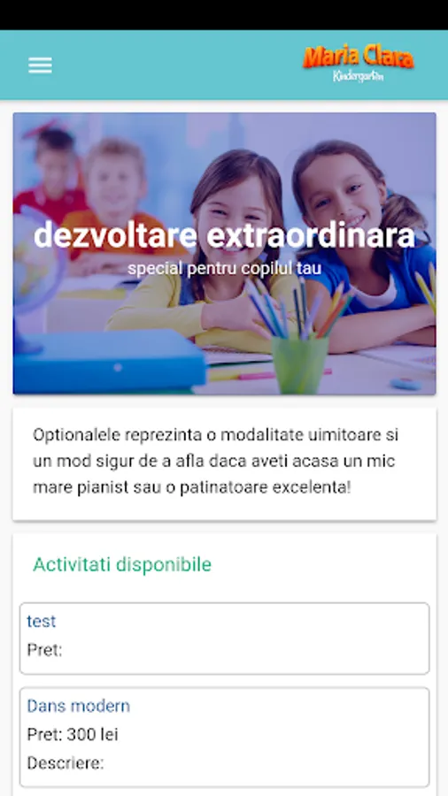 Aplicatie Android a gradinitei Maria Clara Kindergarten, special construita pentru parinti.