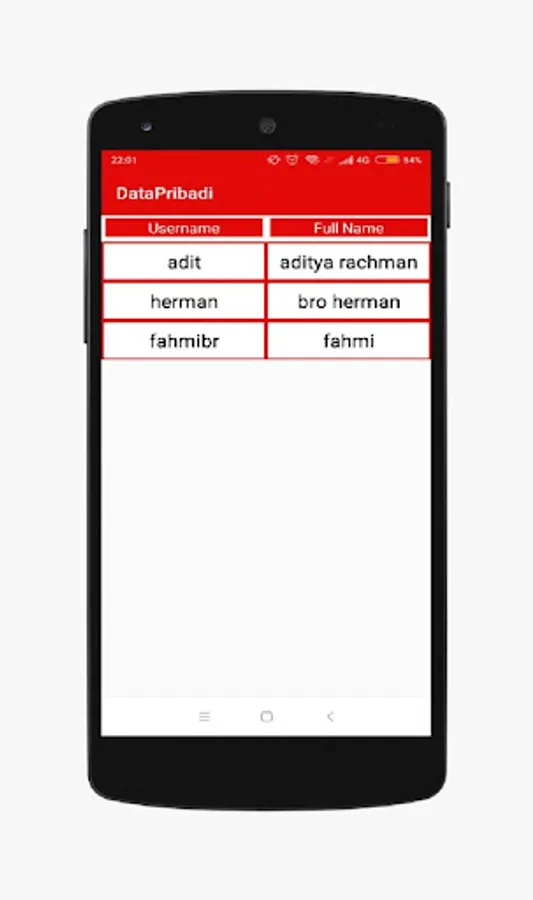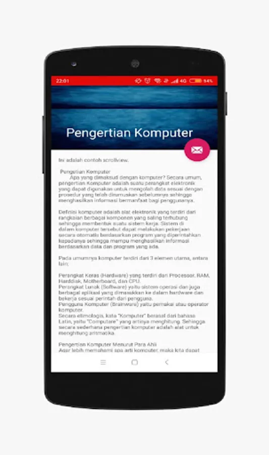 The application in which there are several programs such as Kalkulkator, Scrolling Activity, Music and several others. In addition to being able to use this application, you must go through the Registration process and login to be able to operate this application.