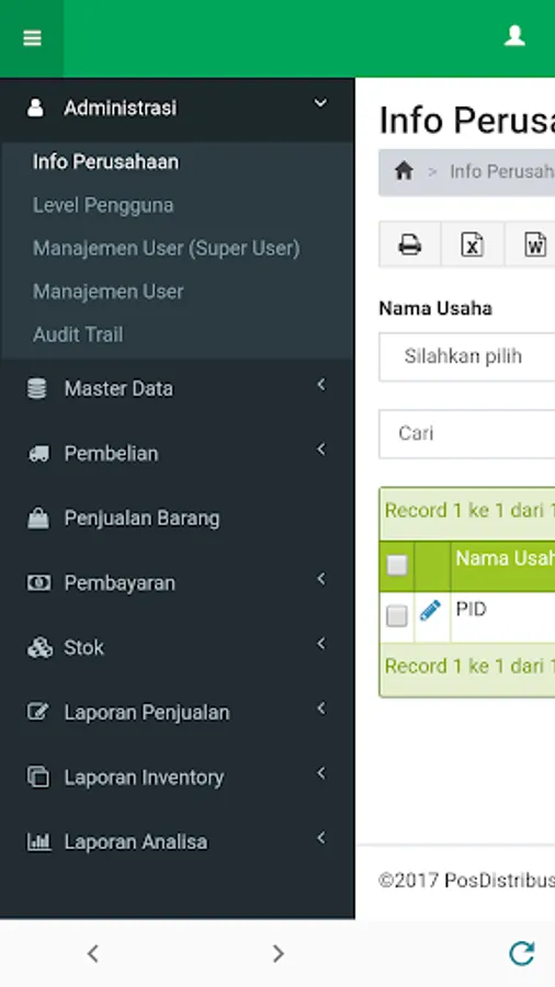 Online Distribution POS web based and mobile designed to enable small and medium enterprises in managing its business. Consisting of web-based applications and android. With this application businesses can see the development of their business anywhere, anytime and in real time. Equipped with reports and graphs