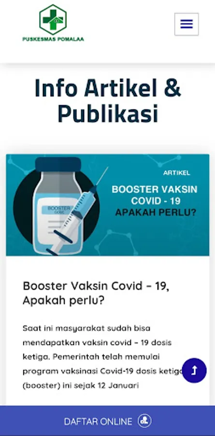 To improve the quality of health services to the community, the Pomalaa Health Center provides an android application that is equipped with several health features and also online outpatient registration with an additional feature of checking schedule reminders.