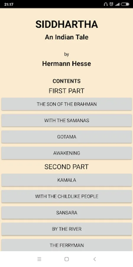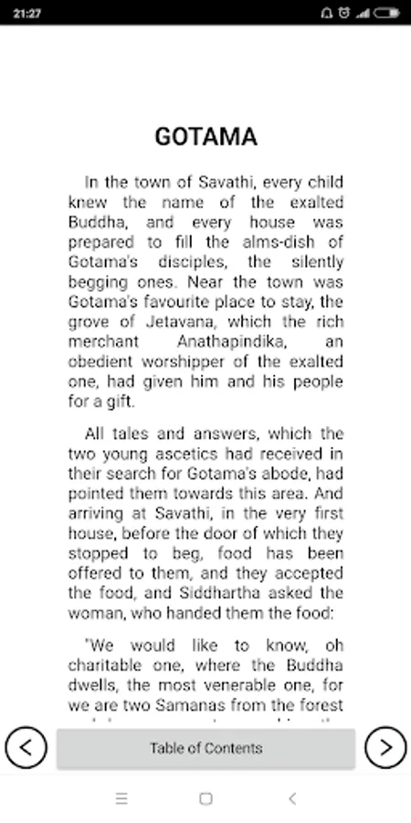 The word Siddhartha is made up of two words in Sanskrit language, siddha (achieved) + artha (what was searched for), which together means "he who has found meaning (of existence)" or "he who has attained his goals". In fact, the Buddha's own name, before his renunciation, was Siddhartha Gautama, Prince of Kapilavastu. In this book, the Buddha is referred to as "Gotama".