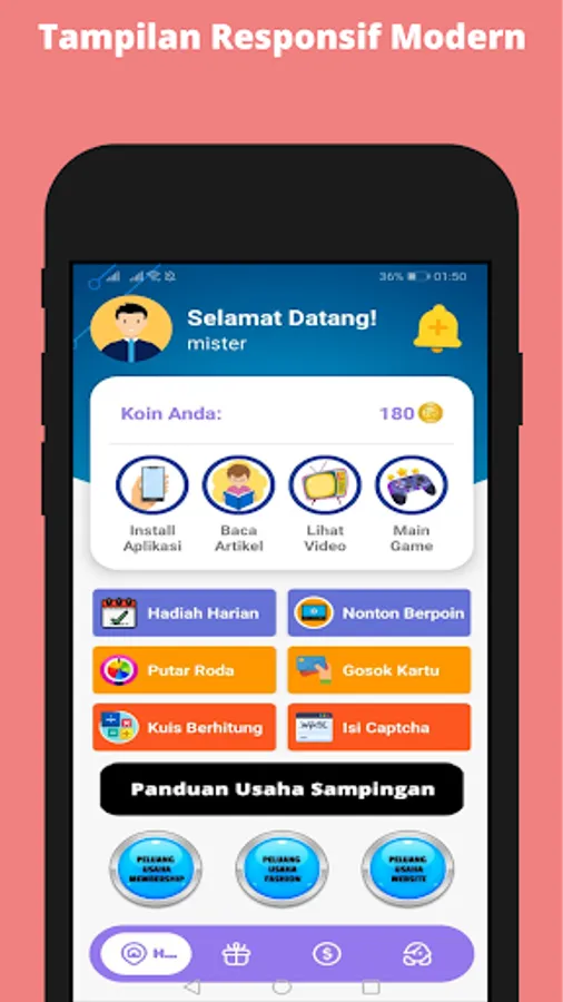This apk is also said to be a money-making application without inviting friends, because there are various ways to get coins that can be exchanged for money. There are already many users who use the application to make money directly into their respective account funds. This money-making application is lawful because it doesn't require any capital other than an internet connection.