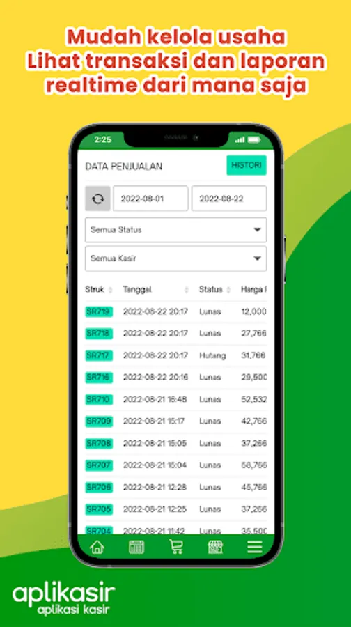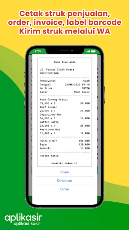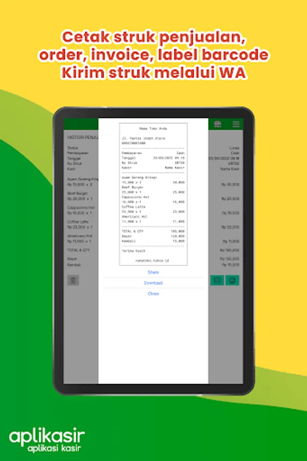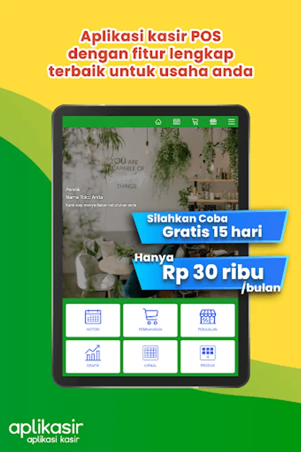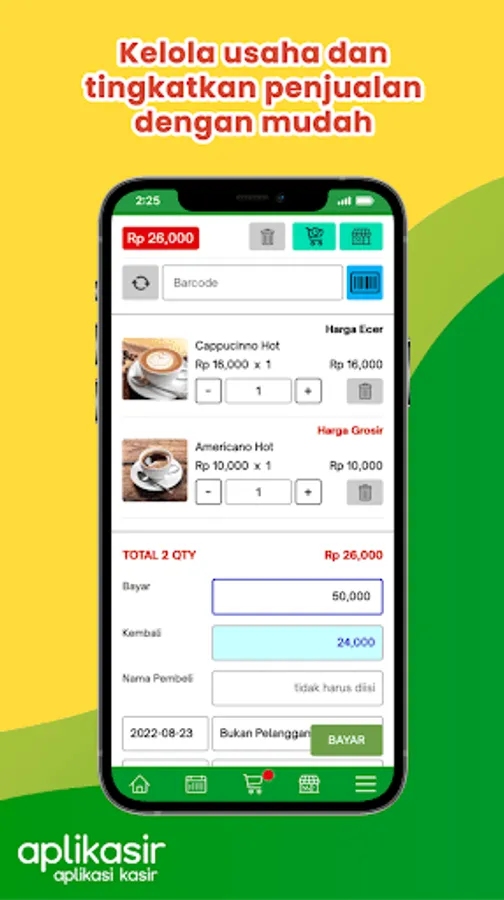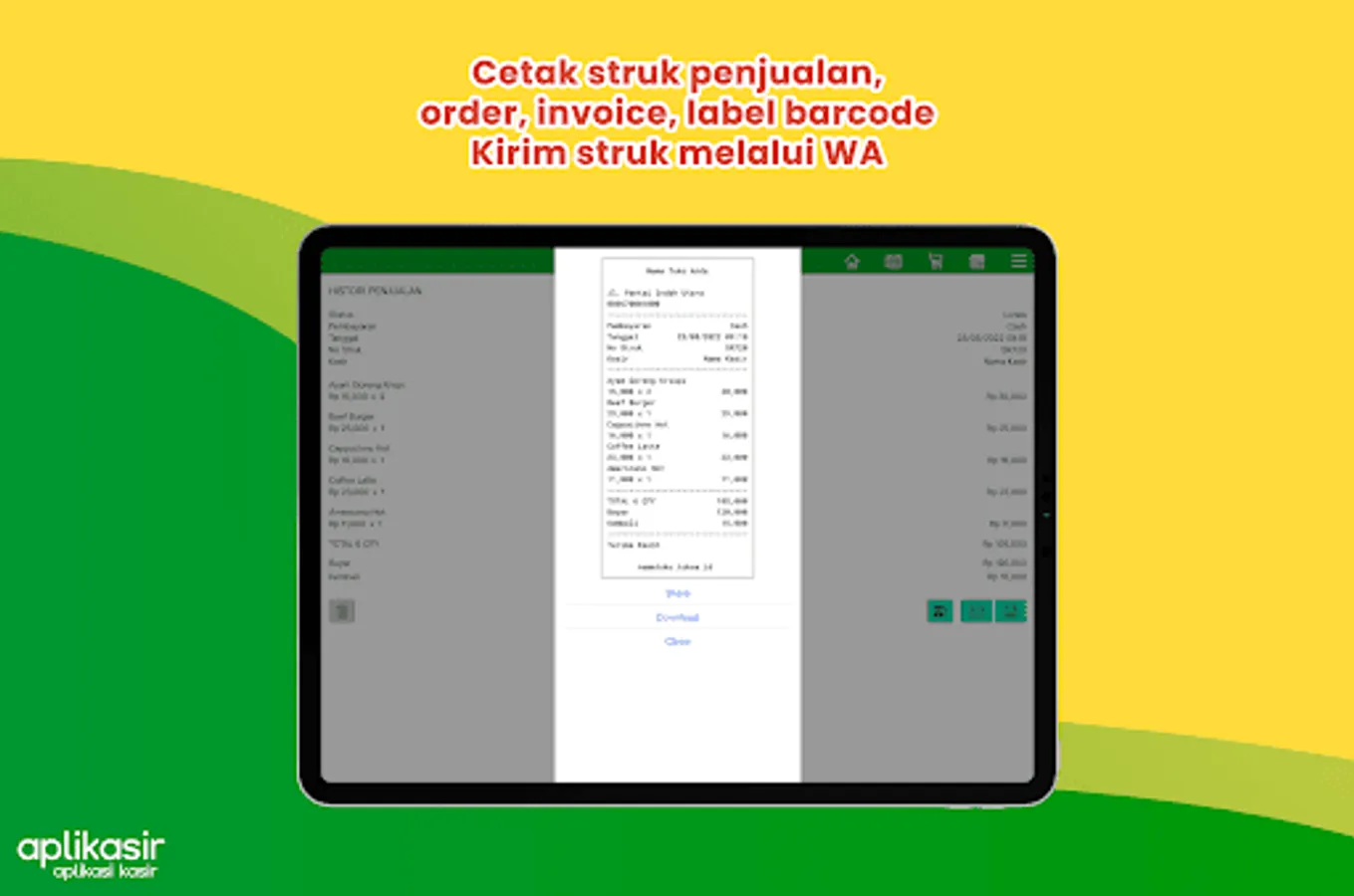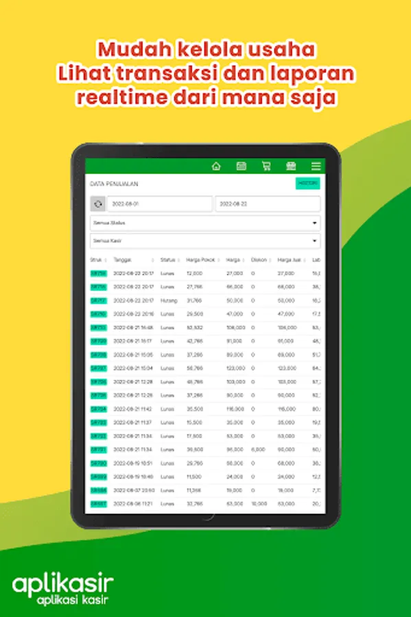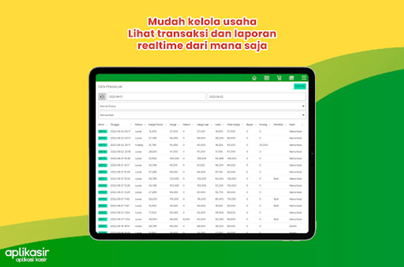 The application is suitable for shops, minimarkets, online shops, stalls, SMEs, counters, cafes, restaurants, restaurants, pharmacies, skincare, accessories stores, clothing stores, grocery stores, toy stores, food stores, cosmetic stores, stationery stores, Bookstores, Electronic Stores, Building Stores, and all other types of businesses. Cashier application with full features and can be adjusted according to your business needs.