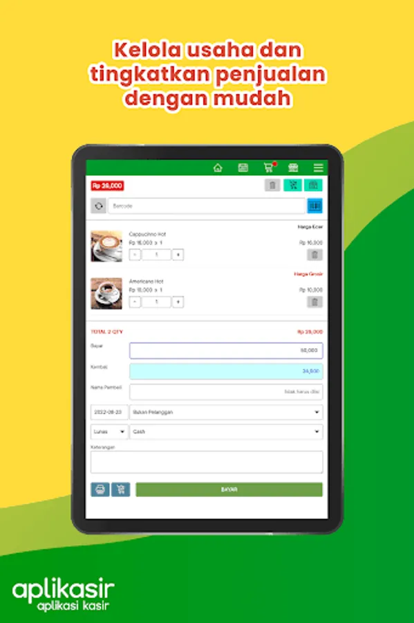 POS (Point of Sale) cashier application with complete features for all types of your business. Help you manage your store and increase sales easily. Cashier application that is easy to use and in accordance with your business. With the sales application it's easier and profits increase. Applications help grow your business.