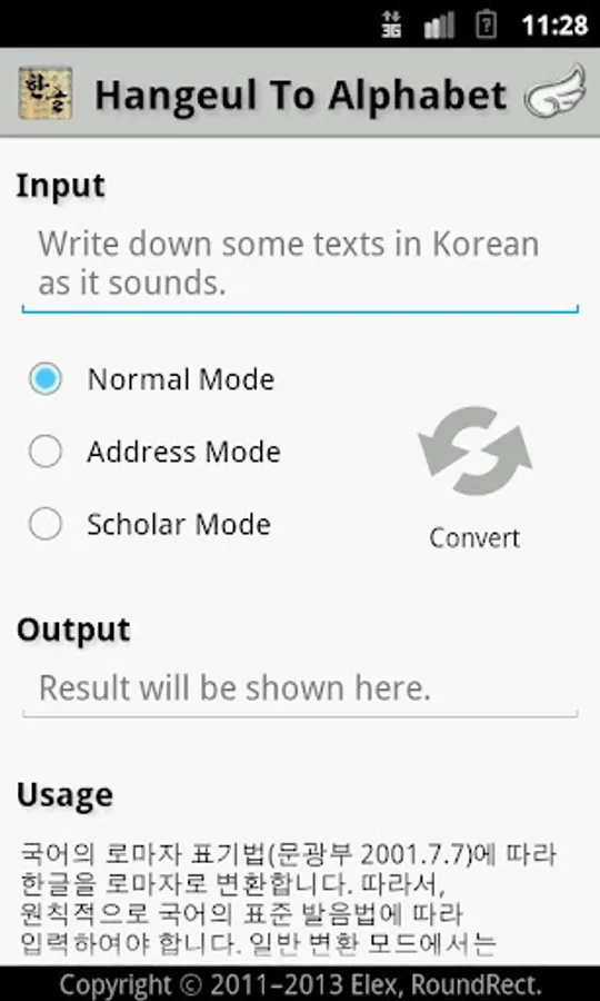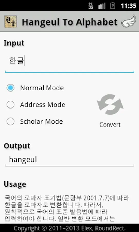 Convert Korean to Roman alphabet based on the Principle of Romanization(07.07.2001 Ministry of Culture and Tourism).