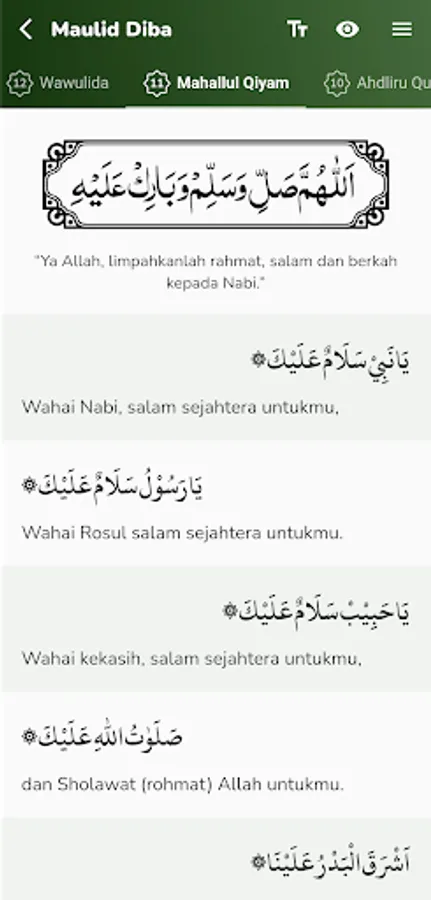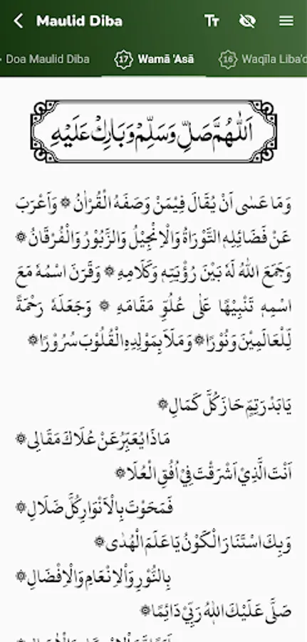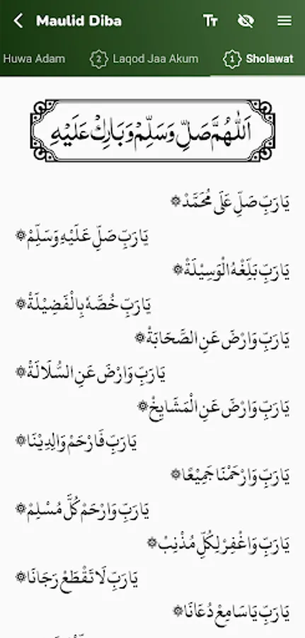 In other words, the Arab-Indonesian Maulid Diba is your loyal companion on your spiritual journey to remember and honor the Prophet Muhammad SAW. Whether you are looking for Maulid Diba poetry, Arabic-Indonesian texts, or just want to feel a deep spiritual presence through Maulid poetry, this application provides everything you need.