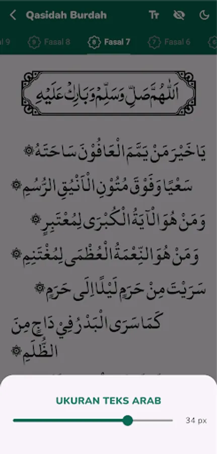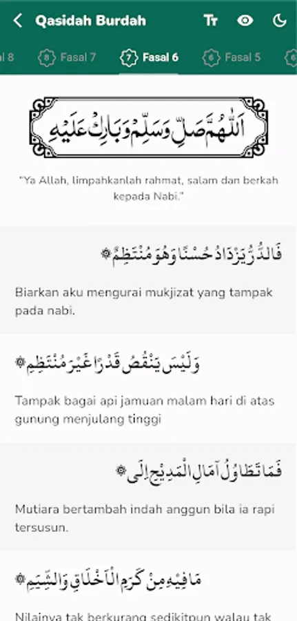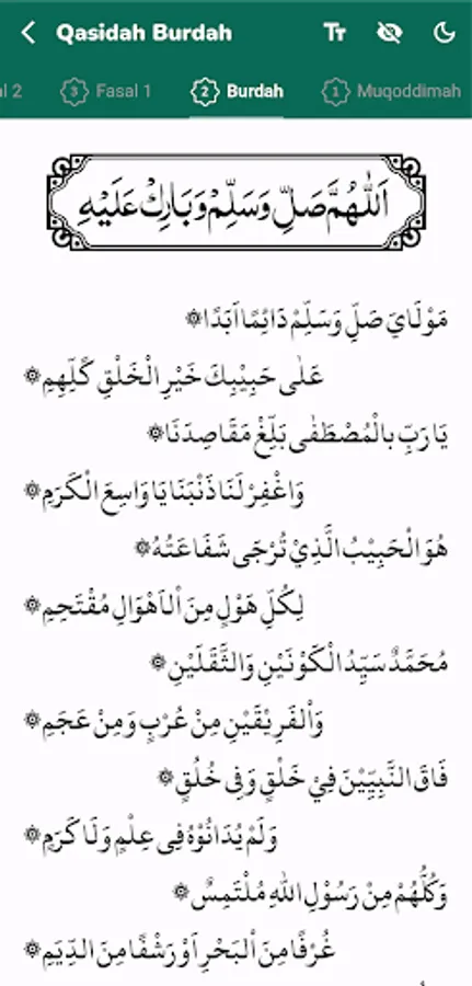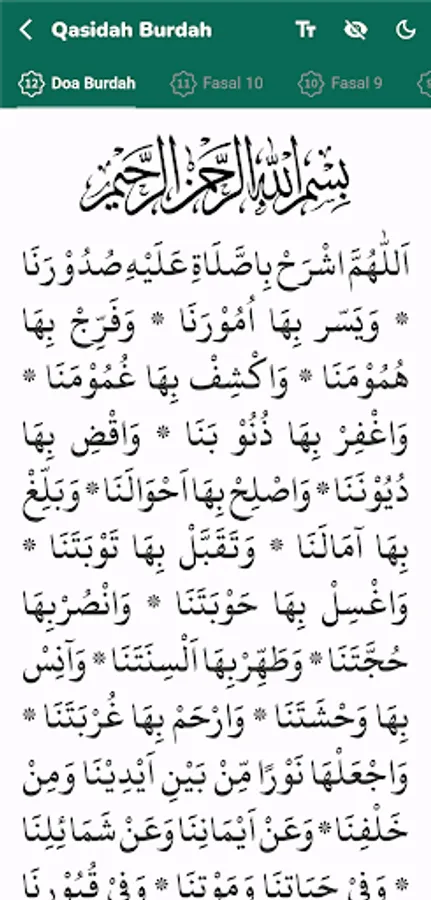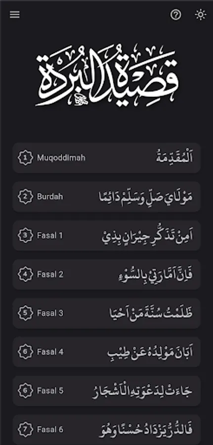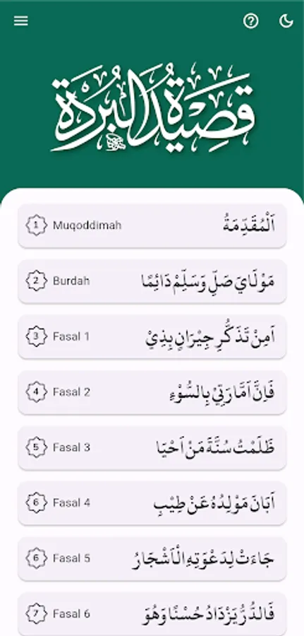 Qasidah Burdah is a free application that contains Qasidah Burdah Arabic, Latin readings and translations into Indonesian. This application can be run offline on smartphones with Android version 5.0 and above.