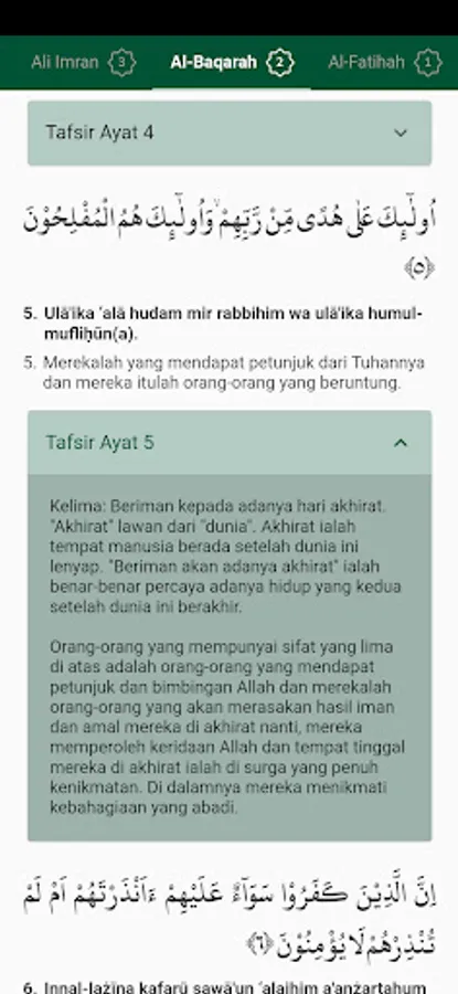 If you wish to gain a deeper understanding, you can switch to a viewing mode that separates the Arabic text, translation, and tafsir, allowing you to reflect on the meaning of the verse in greater depth.