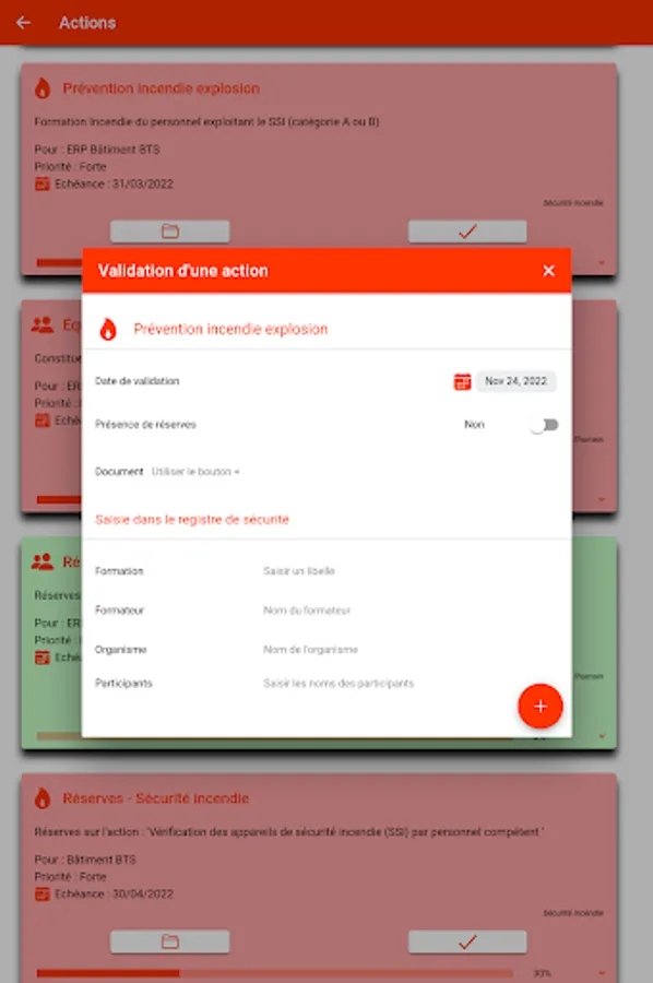 - Modify the progress of an action and/or validate it.