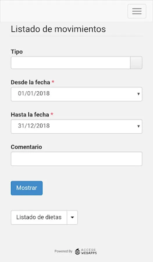 This application allows you to control the personal or employee diets, being able to save the expenses and the supporting documents.