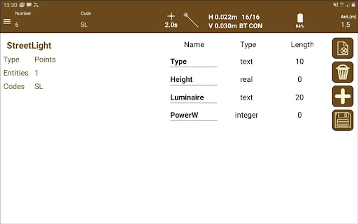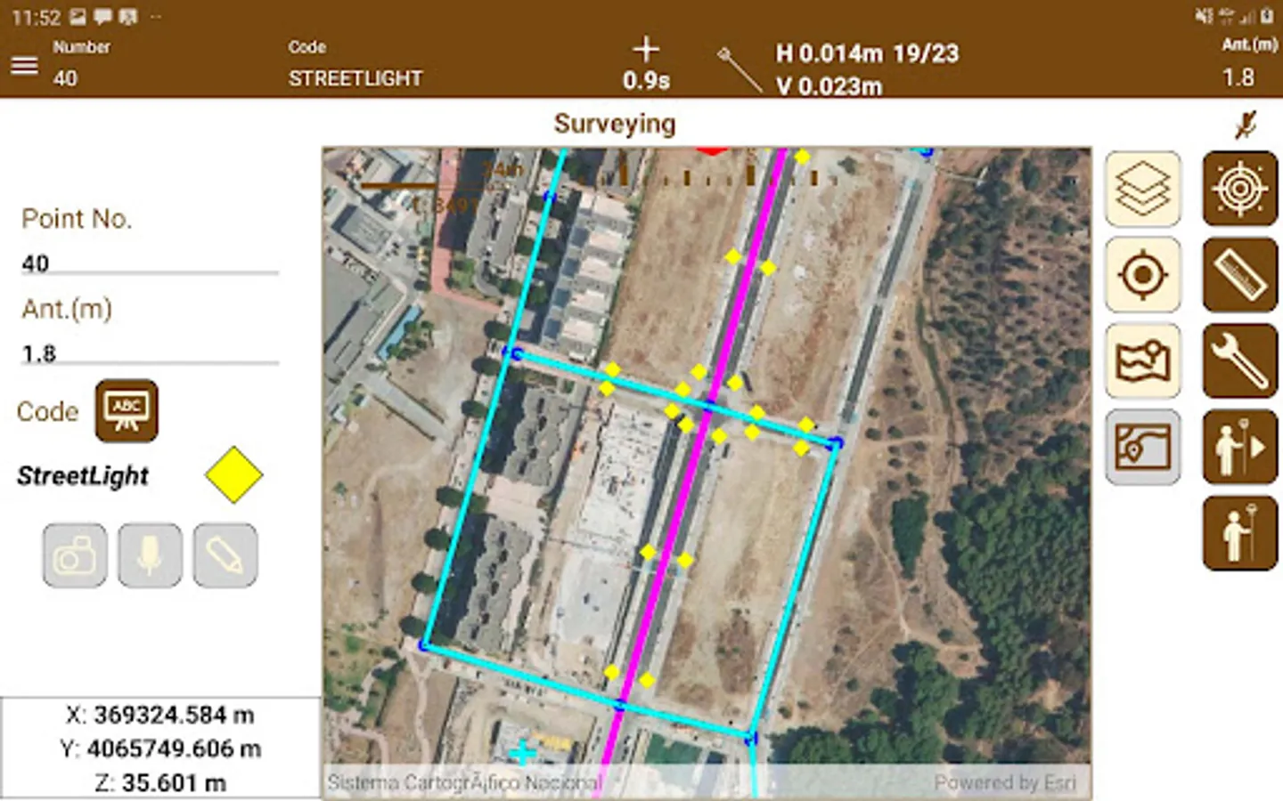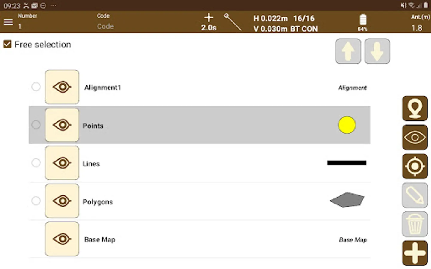 The application makes it very easy to survey topographic points and linear and polygonal entities, which are drawn in layers and with customized symbology. The continuous mode allows you to record points automatically, specifying a distance, time or slope interval.