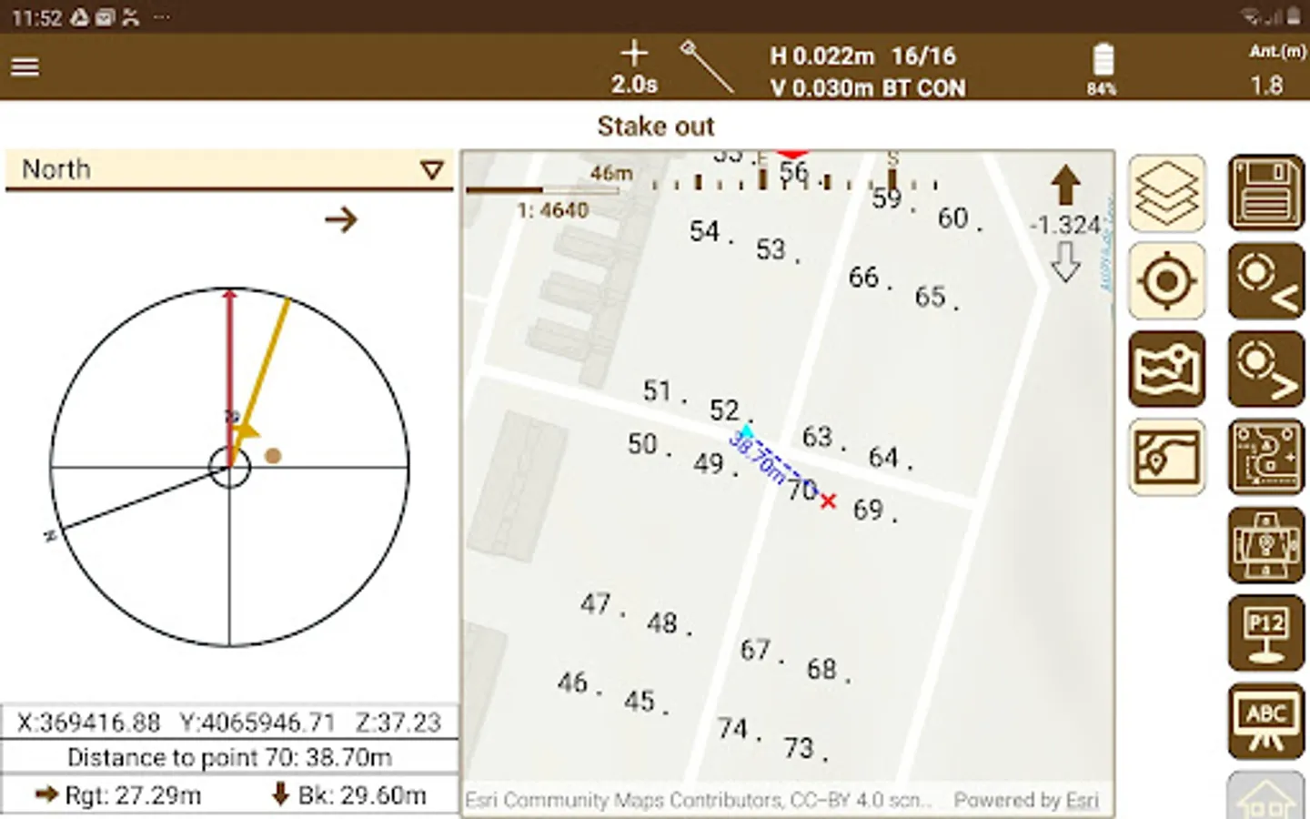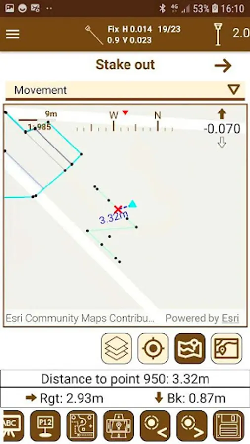 Points, lines and polylines of the cartography can be staked out, designating them graphically or selecting them by various criteria. The application offers different help modes, such as map, compass, target and augmented reality. Voice prompts or sounds can also be activated.
