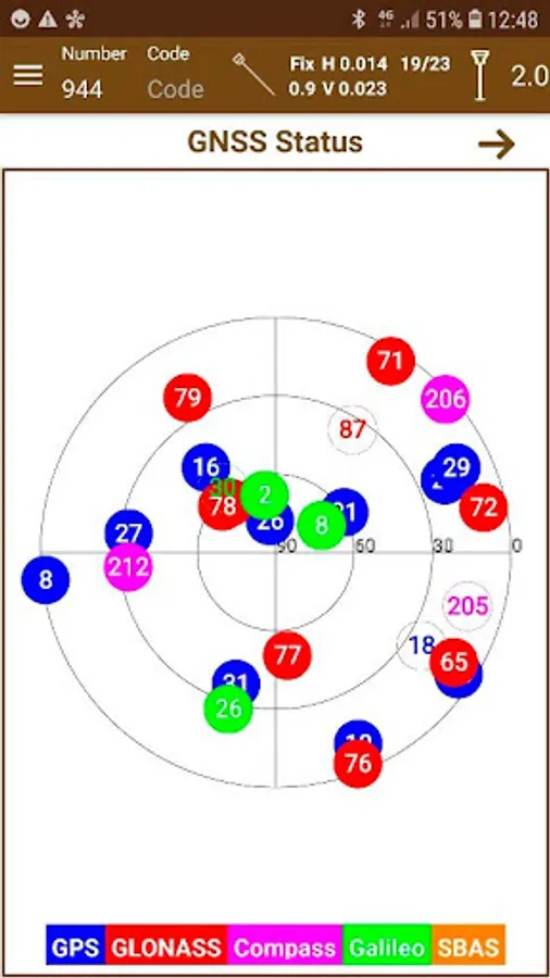 The status bar shows at all times the position type, accuracies, IMU status, etc. and supports GPS, GLONASS, BeiDou, Galileo and SBAS constellations.