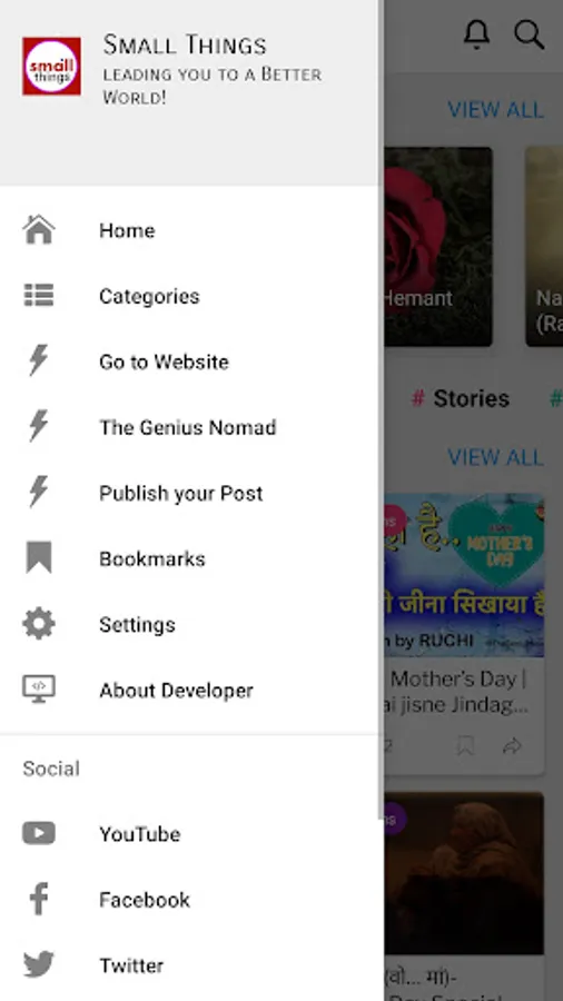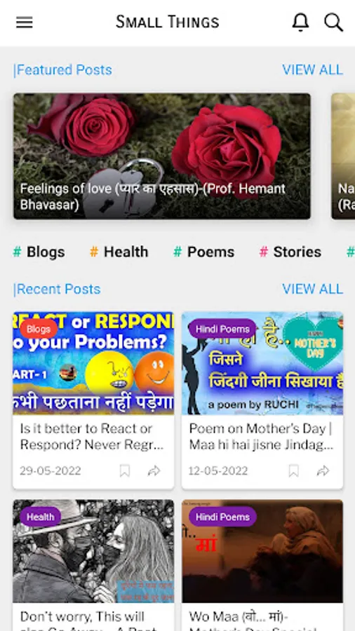 Small Things is an open Platform to Entertain you and provide you knowledge. Our aim you to help you to lead to a Better World. We uploads stories, poems and blogs on various topics. The topics are mostly related to positivity, motivational and self help.