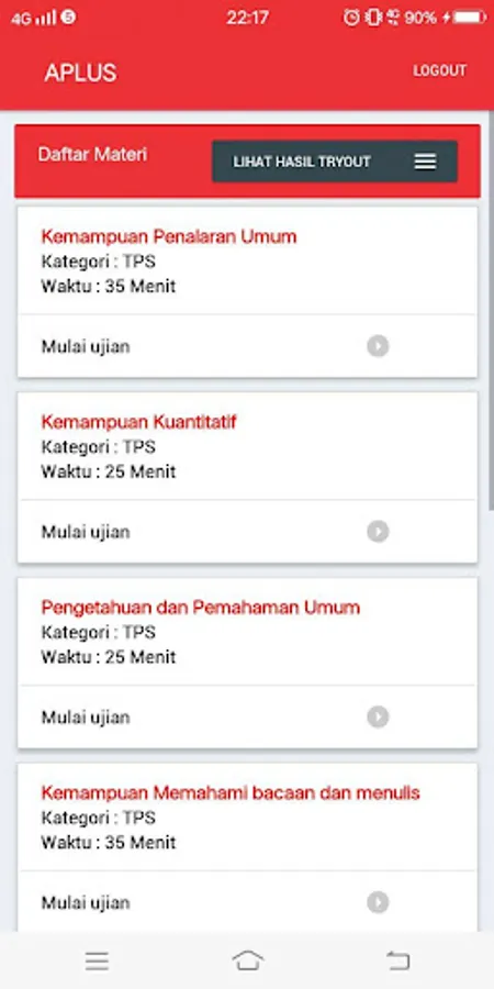 A-TryOut is an application used for Bimbel APLUS CLC's Tryout exam. Through synchronization of test data will be done offline.