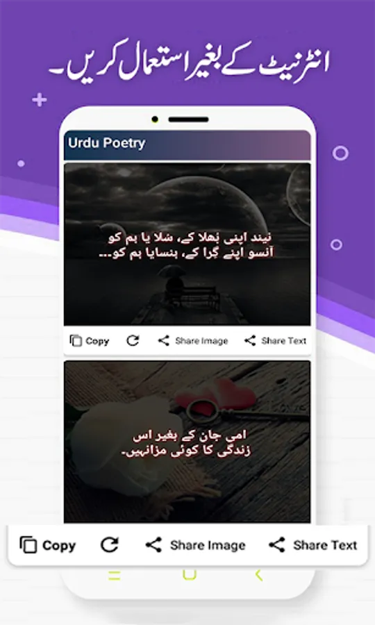 offline Urdu Poetry on Photo app having more then 10000+ top class poetry. We have collected almost all types of urdu shayari. User can easily share Urdu Shayari with there friends and family.