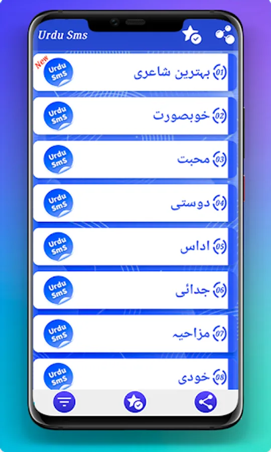 Urdu SMS is best Urdu poetry (shayari),Urdu sms app. You will find every type of shayari in Urdu SMS.