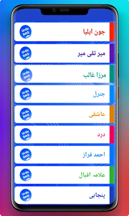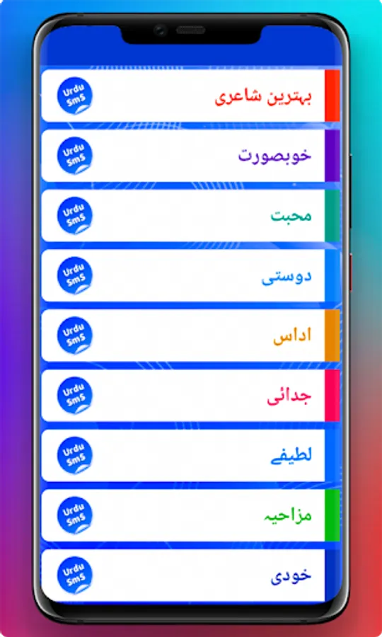 Urdu SMS Lite app have all time best and unique poetry collection. There more then fifteen different categories of Urdu poetry.
