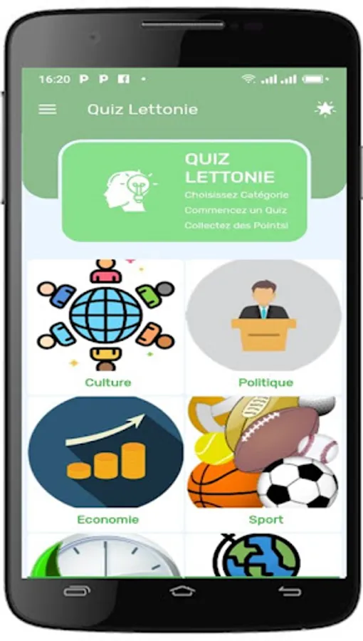 "Quiz Latvia" is an interactive application designed to allow users to discover and deepen their knowledge of Latvia through a series of captivating interactive quizzes. The application offers six different themes, namely culture, politics, economy, sport, history and geography, thus offering a complete and varied experience of this fascinating Baltic country.