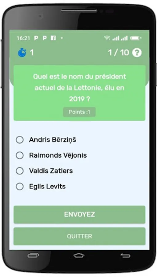 Thanks to "Quiz Latvia", users can not only test their knowledge about Latvia, but also learn more about the culture, politics, economy, sports, history and geography of this Baltic country. Whether for moments of relaxation or to deepen their knowledge, this application offers an educational and entertaining experience for all lovers of Latvia.
