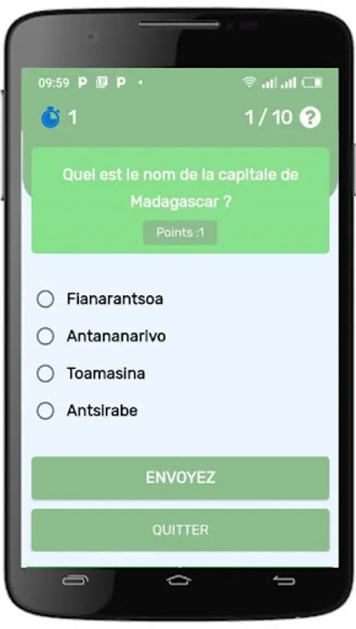 Quiz Madagascar, is an educational application that allows users to test their knowledge of different aspects of Madagascar, such as culture, politics, economy, sports, history and geography. Users can select a quiz category that interests them and answer a series of multiple-choice questions.