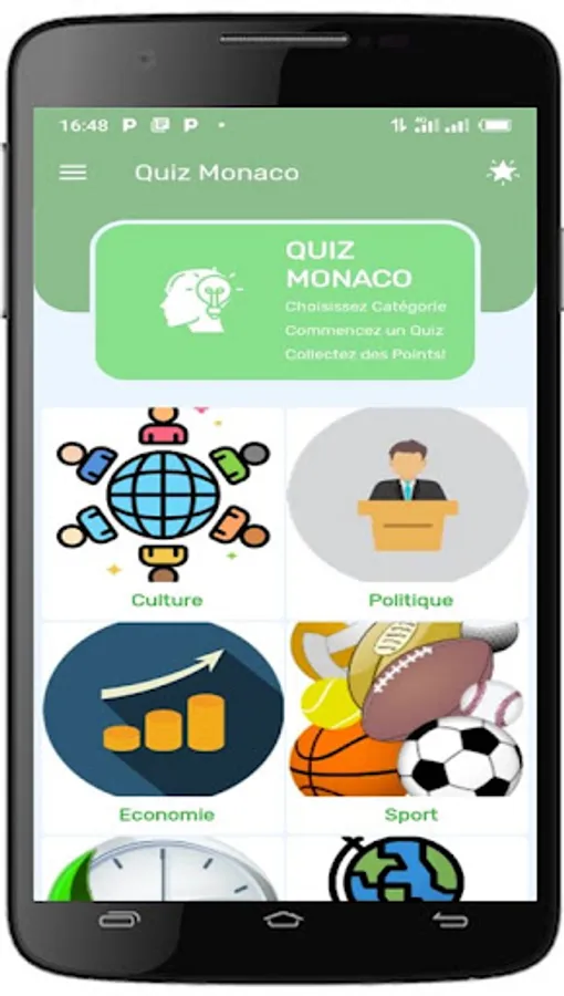 Quiz Monaco, est une application éducative, qui permet aux utilisateurs de tester leurs connaissances sur la principauté de Monaco à travers des questions à choix multiples. Elle peut contenir des questions portant sur différents aspects de Monaco, tels que son histoire, sa culture, sa géographie, sa politique, son économie, etc.