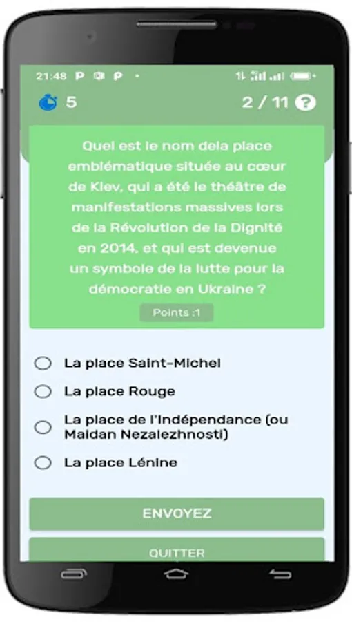"Quiz Ukraine" application is an interactive game designed to allow users to test and improve their knowledge of different aspects of culture, politics, economy, sports, history and the geography of Ukraine.