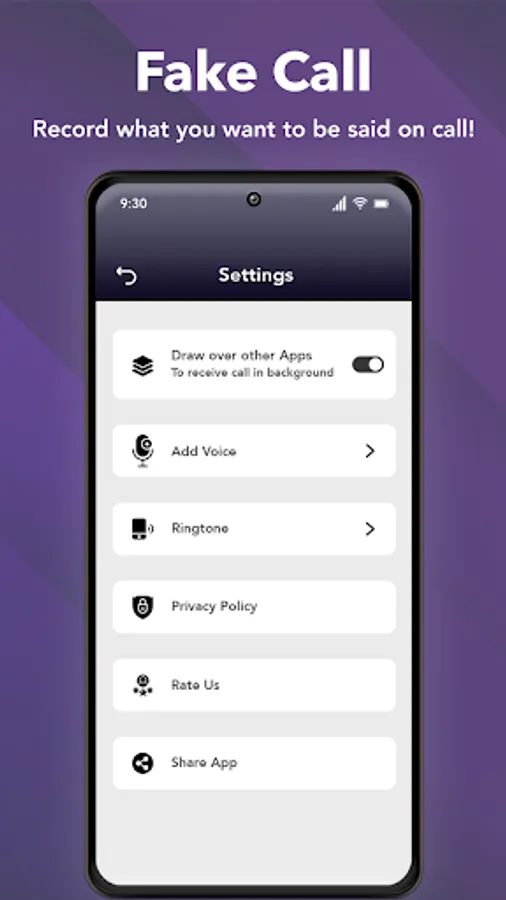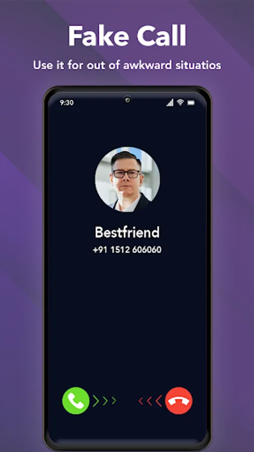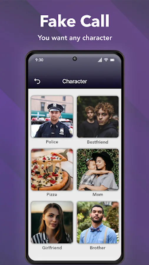 ✔ Set a character for example fake incoming call from mom, police, girlfriend or pizza or any other name you want to select.