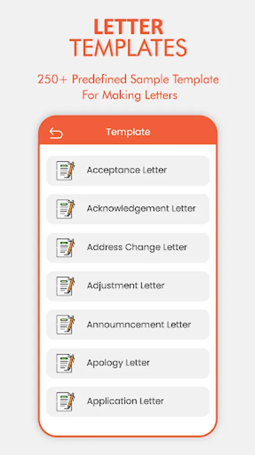This Letter Template Design : English Letter Writing for students is an essential app for all students, employees, and business doing persons because this letter pad maker has all the formal letters or business proposal letters and personal letters that you want to write in this letter typing app.